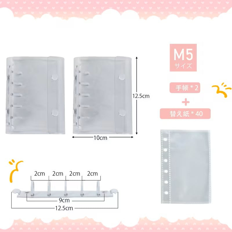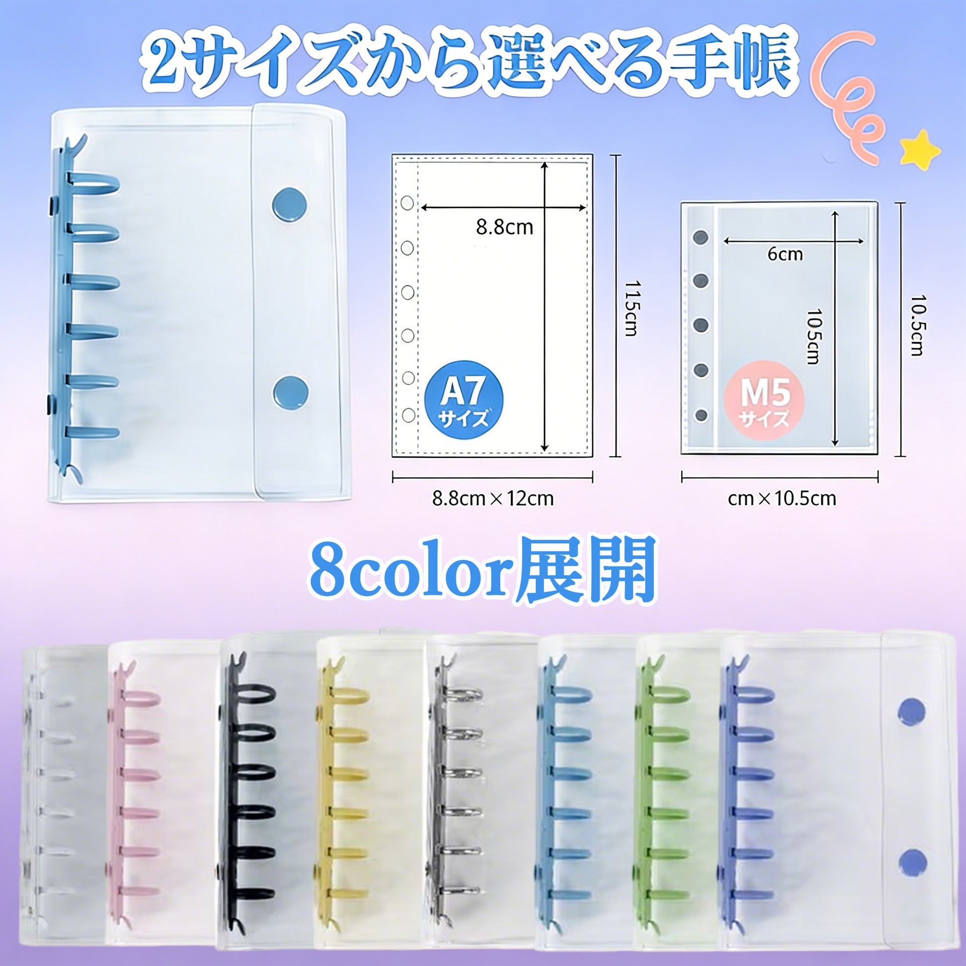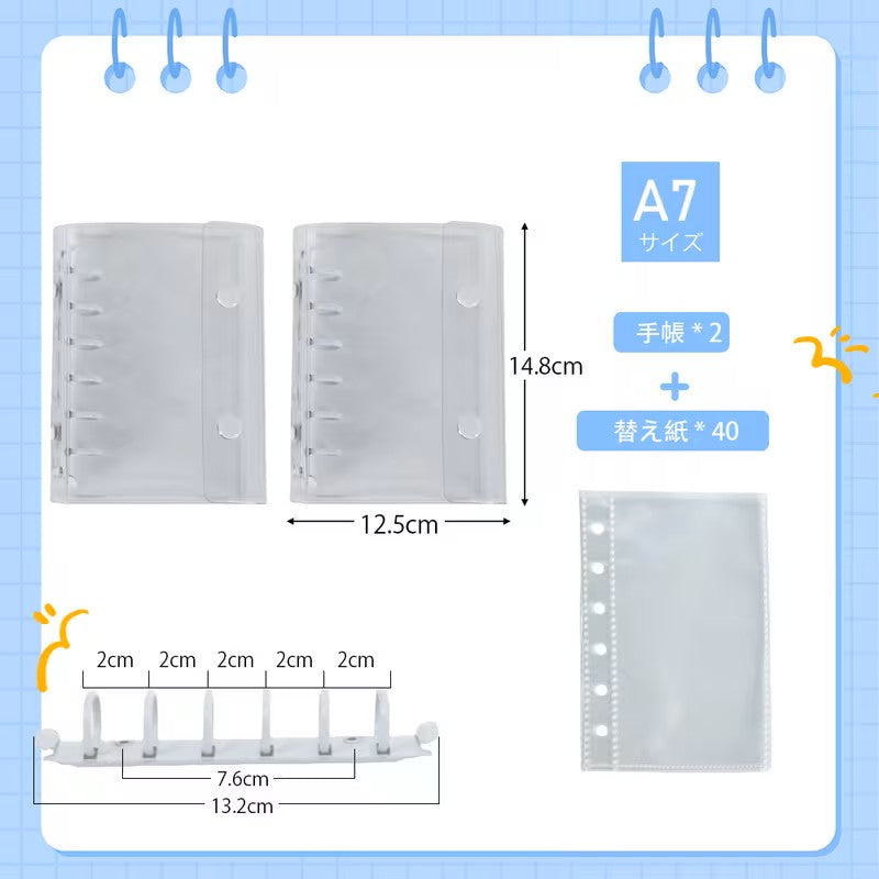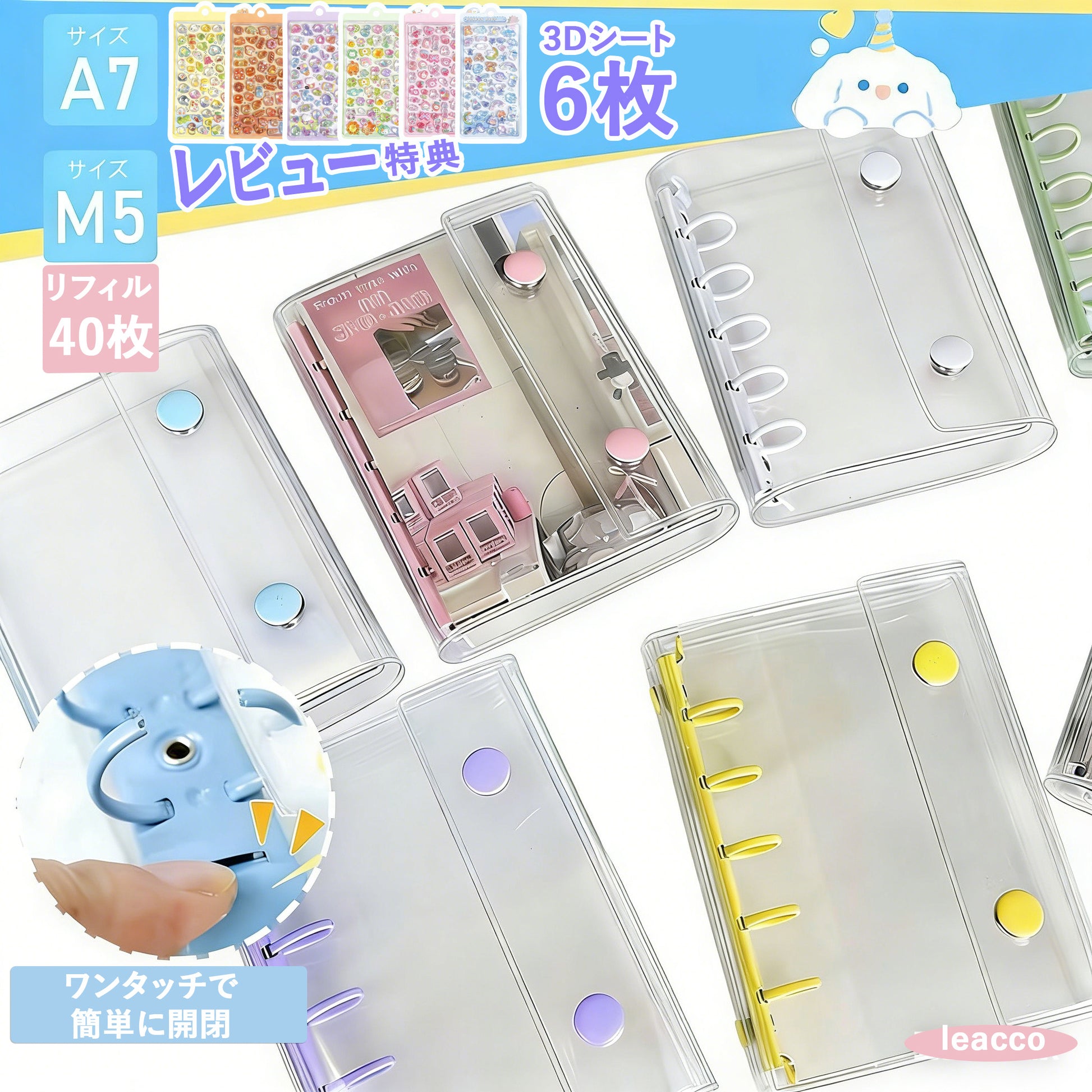 シール帳 バインダー 透明 2個セット クリア M5 A7 リフィル40枚付 シールバインダー はがせる シール手帳 手帳デコ 台紙 6穴 クリアバインダー カラフル 穴開きシート シール収納 トレカ収納 コレクトブック カスタマイズ手帳 推し活